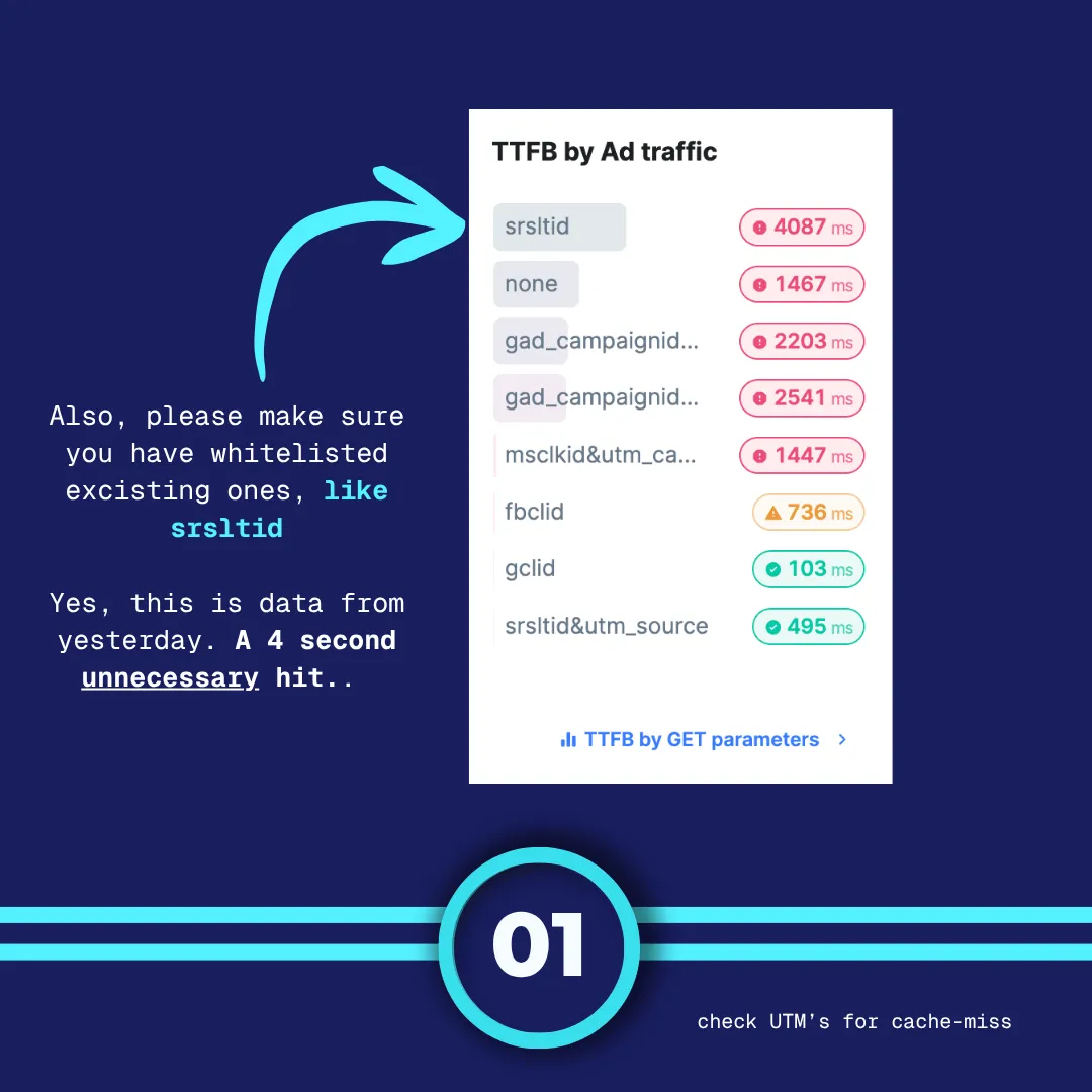 Make sure that any new UTM parameters or tracking codes are added to your caching strategy. This will help prevent unnecessary cache misses and ensure that your website loads swiftly for visitors arriving through these campaigns. Especially if you use a CDN, this can be a huge win in terms of performance, that's very easy to accomplish.